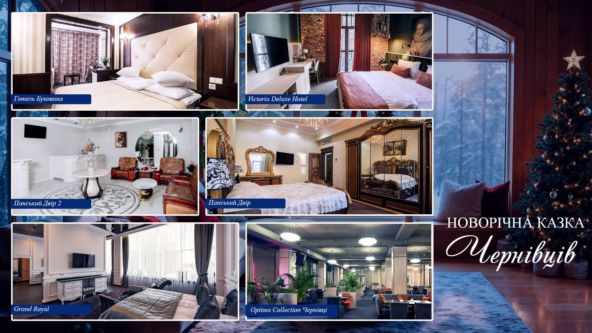 1. Optima Collection Чернівці — елегантний та святковий комфорт у центрі міста, ідеальний для новорічних прогулянок та різдвяного настрою, а також, для тих, хто цінує стиль, сервіс і зручне розташування.