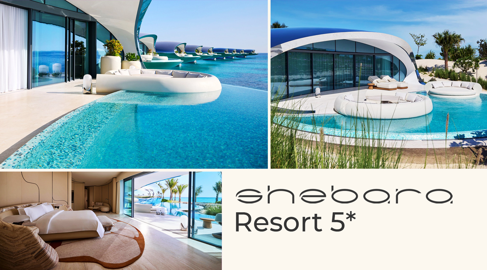 На приватному острові, обмитому теплим вітром пустелі, вілли Shebara сяють, немов зорі, що спустилися на воду. Мінімалістичний дизайн, панорамні скляні фасади, власні басейни та тераси з краєвидом на безмежний горизонт — тут кожна деталь говорить про красу, тишу й відпочинок “для душі”.